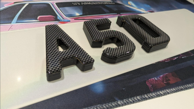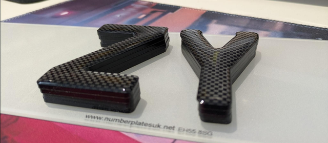 Plates available in standard size (520x111), 7-Digit (440x111), 6-digit (399x111), 5-digit (330x111), Hex lambo style in 7, 6 and 5 digit size and also 21x6 Range Rover/Jaguar rear plate and 11x8 Land Rover rear plate. Tinted plates also available but these will not have bs numbers so wont be road legal.