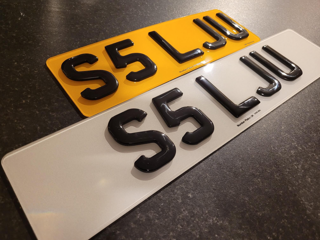 Road Legal Plates come with Company Name, Post Code and New 145e BS number. Plates available in standard size (520x111), 7-Digit (440x111), 6-digit (399x111), 5-digit (330x111), Hex lambo style in 7, 6 and 5 digit size and also 21x6 Range Rover/Jaguar rear plate and 11x8 Land Rover rear plate. Tinted plates also available but these will not have bs numbers so wont be road legal.