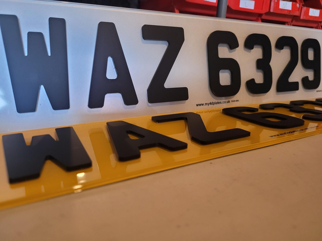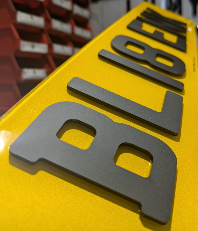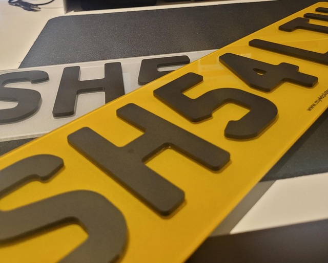 Road Legal Plates come with Company Name, Post Code and New 145e BS number. Plates available in standard size (520x111), 7-Digit (440x111), 6-digit (399x111), 5-digit (330x111), Hex lambo style in 7, 6 and 5 digit size and also 21x6 Range Rover/Jaguar rear plate and 11x8 Land Rover rear plate. Tinted plates also available but these will not have bs numbers so wont be road legal.