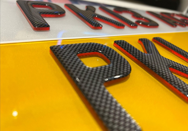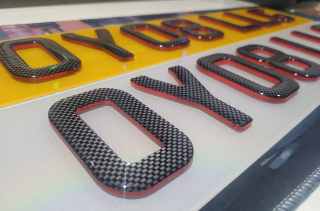 Plates available in standard size (520x111), 7-Digit (440x111), 6-digit (399x111), 5-digit (330x111), Hex lambo style in 7, 6 and 5 digit size and also 21x6 Range Rover/Jaguar rear plate and 11x8 Land Rover rear plate. Tinted plates also available but these will not have bs numbers so wont be road legal.