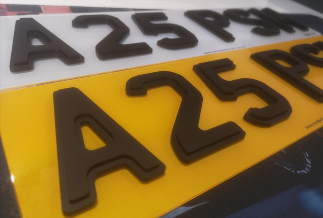 Road Legal Plates come with Company Name, Post Code and New 145e BS number. Plates available in standard size (520x111), 7-Digit (440x111), 6-digit (399x111), 5-digit (330x111), Hex lambo style in 7, 6 and 5 digit size and also 21x6 Range Rover/Jaguar rear plate and 11x8 Land Rover rear plate. Tinted plates also available but these will not have bs numbers so wont be road legal.