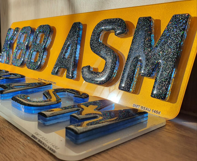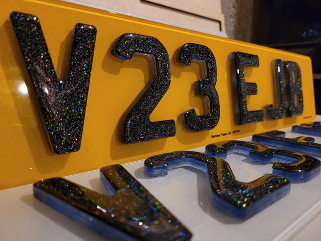 Please note: Glitter Gel or Carbon Gel are NOT Road Legal also tinted plates or plates with spacing or colour are also NOT road legal. These will be made as show plates and will not have company name and BS numbers on them.
