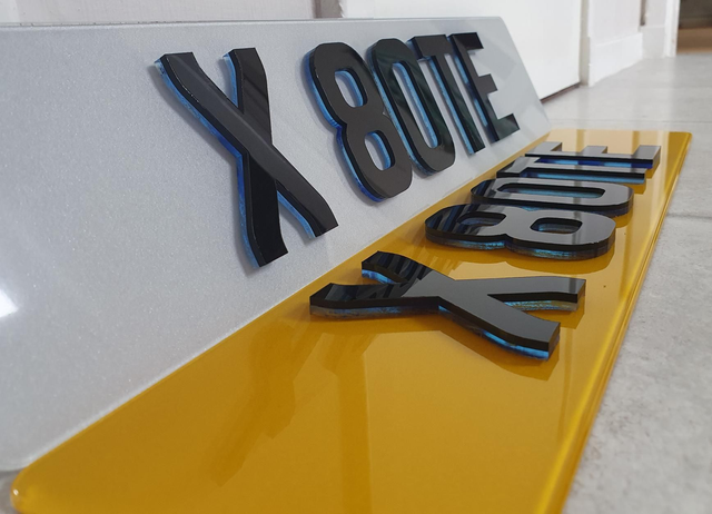 Please note: Glitter Gel or Carbon Gel are NOT Road Legal also tinted plates or plates with spacing or colour are also NOT road legal. These will be made as show plates and will not have company name and BS numbers on them.