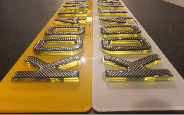 Please note: Glitter Gel or Carbon Gel are NOT Road Legal also tinted plates or plates with spacing or colour are also NOT road legal. These will be made as show plates and will not have company name and BS numbers on them.
