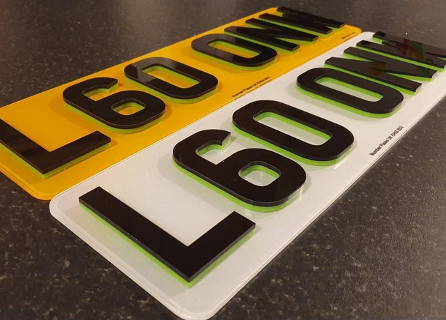 Please note: Glitter Gel or Carbon Gel are NOT Road Legal also tinted plates or plates with spacing or colour are also NOT road legal. These will be made as show plates and will not have company name and BS numbers on them.