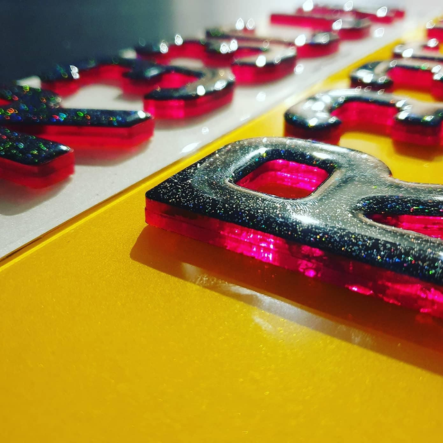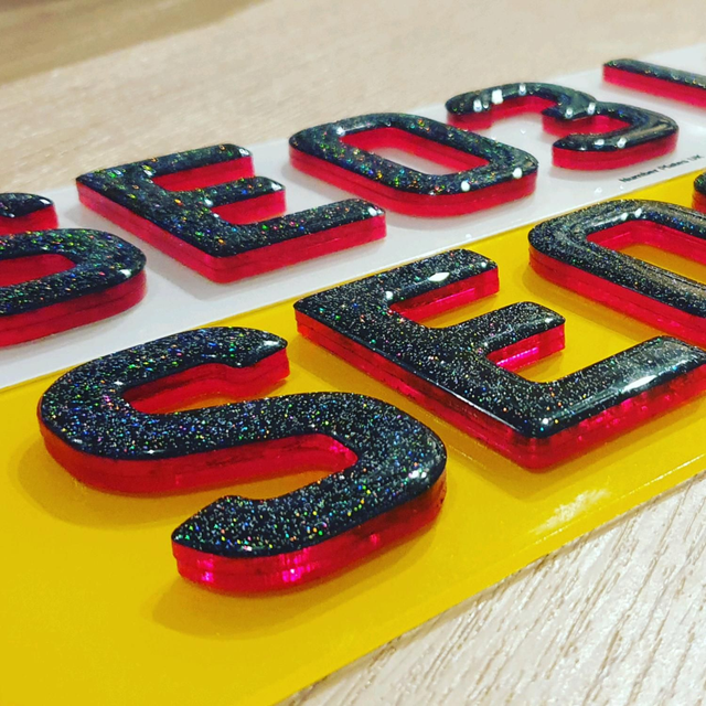 6mm Neon Red 4D with glitter gel on top.