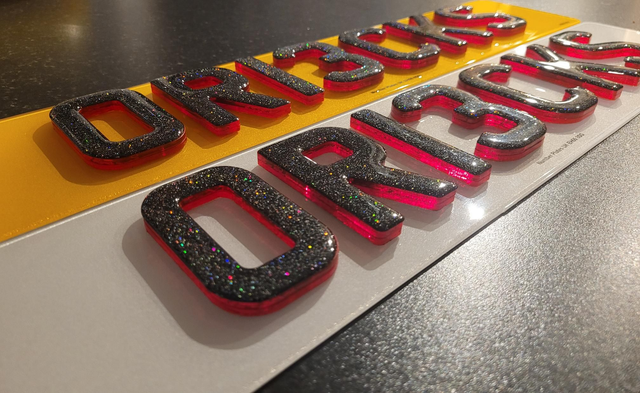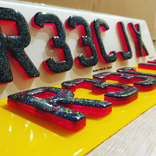 Please note: Glitter Gel or Carbon Gel are NOT Road Legal also tinted plates or plates with spacing or colour are also NOT road legal. These will be made as show plates and will not have company name and BS numbers on them.