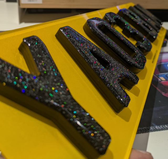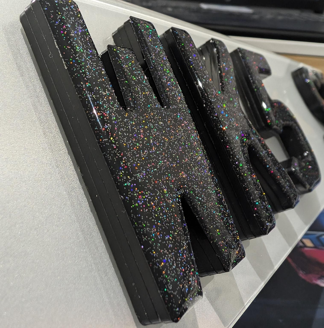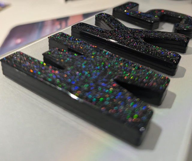 9mm Black 4D with glitter gel on top.