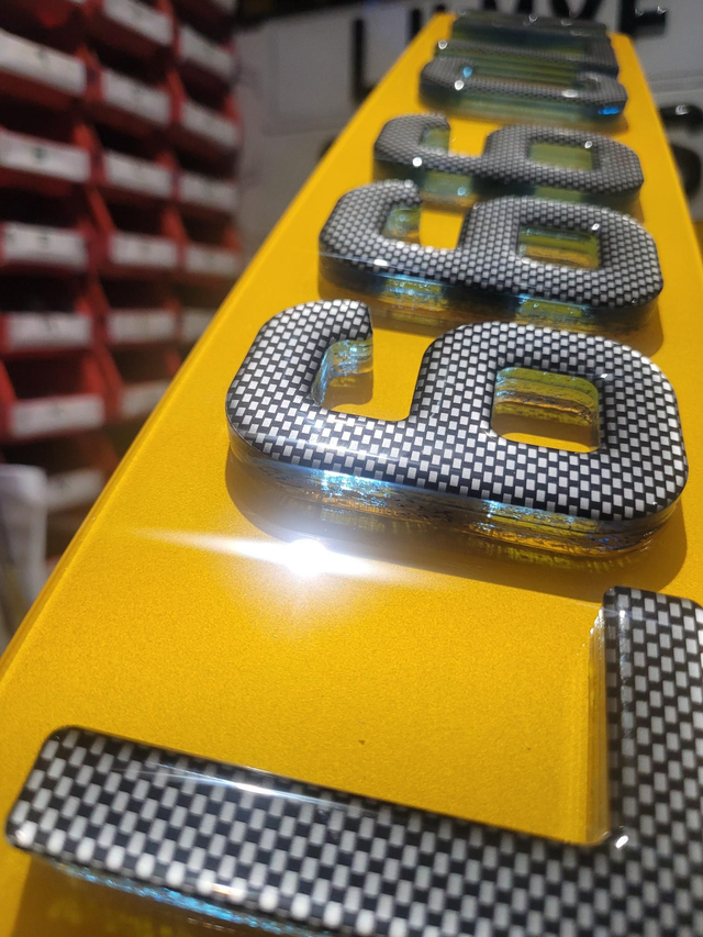 Please note: Glitter Gel or Carbon Gel are NOT Road Legal also tinted plates or plates with spacing or colour are also NOT road legal. These will be made as show plates and will not have company name and BS numbers on them.