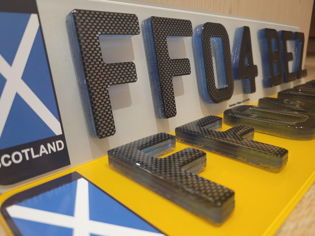 2D, 3D Gel and 4D Scotland, GB and Green electric flags available. Black 4D border, Screw Caps and Sticky pads also available. Add these to cart along with plates.