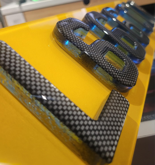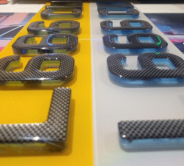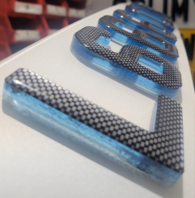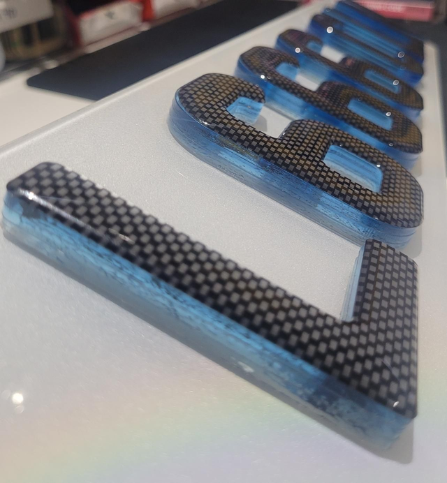 9mm Neon Blue 4D with carbon gel on top. 4 layers.