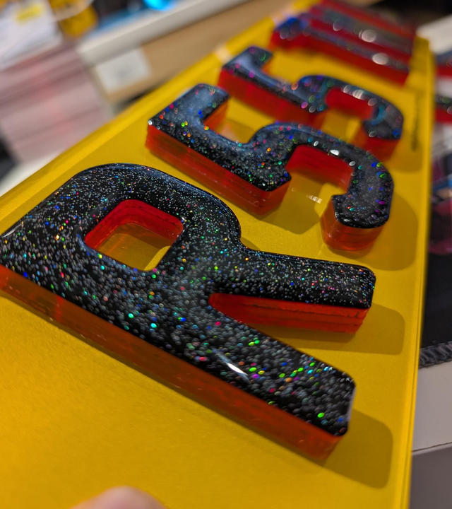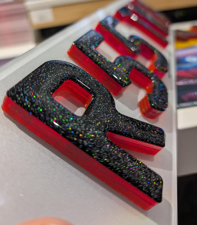 9mm Neon Red 4D with glitter Gel on top. 4 layers.